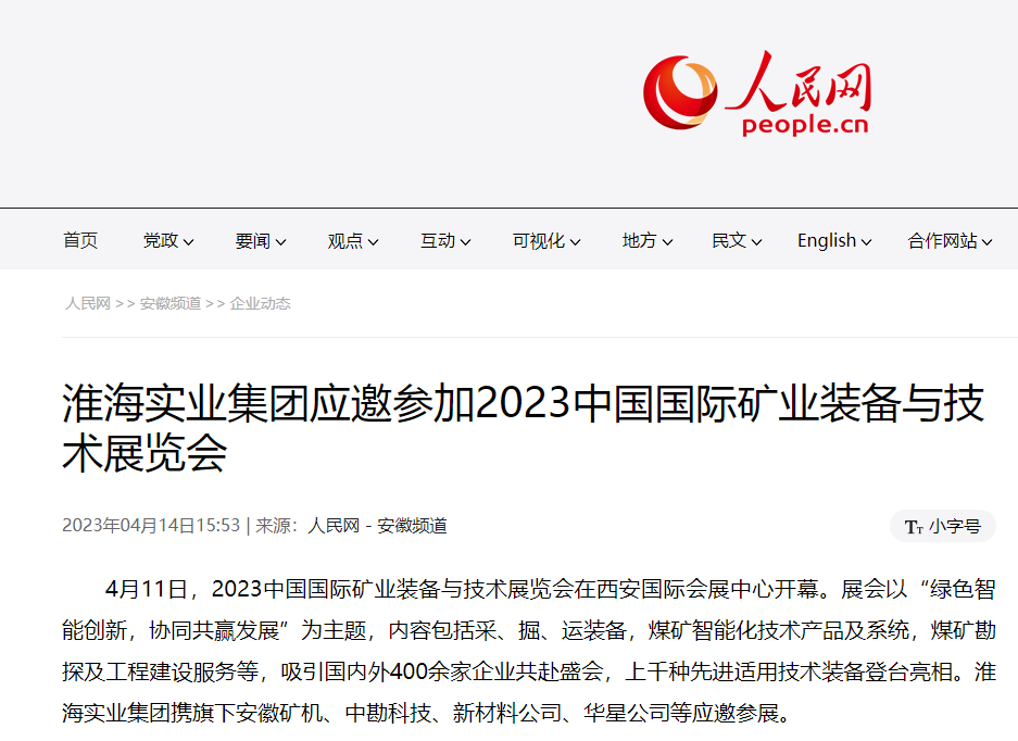 4月11日,2023中國(guó)國(guó)際礦業(yè)裝備與技術(shù)展覽會(huì)在西安國(guó)際會(huì)展中心開幕。展會(huì)以“綠色智能創(chuàng)新,協(xié)同共贏發(fā)展”為主題,內(nèi)容包括采、掘、運(yùn)裝備,煤礦智能化技術(shù)產(chǎn)品及系統(tǒng),煤礦勘探及工程建設(shè)服務(wù)等,吸引國(guó)內(nèi)外400余家企業(yè)共赴盛會(huì),上千種先進(jìn)適用技術(shù)裝備登臺(tái)亮相?;春?shí)業(yè)集團(tuán)攜旗下安徽礦機(jī)、中勘科技、新材料公司、華星公司等應(yīng)邀參展。