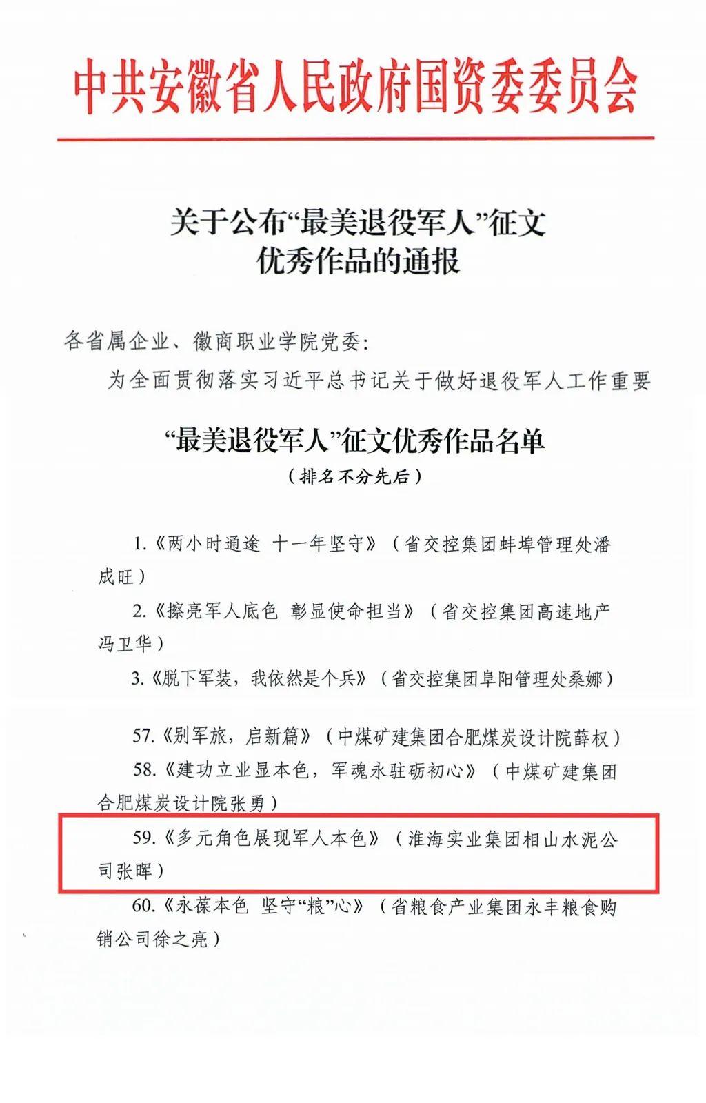 為深入落實(shí)習(xí)近平總書記關(guān)于退役軍人工作重要指示批示精神,大力營造尊崇、關(guān)愛退役軍人的濃厚氛圍,省國資委黨委在省屬企業(yè)開展“最美退役軍人”征文活動(dòng)。淮海實(shí)業(yè)集團(tuán)推薦的《多元角色展現(xiàn)軍人本色》獲評優(yōu)秀作品。