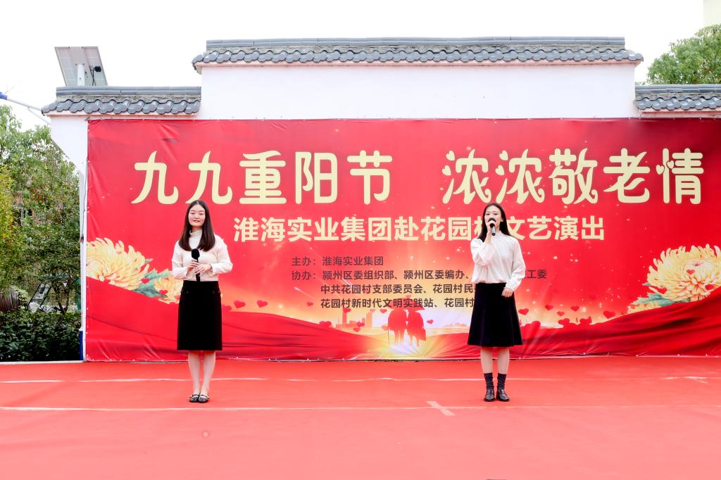 為弘揚中華民族敬老、愛老、助老傳統美德,豐富老年朋友文化娛樂生活,共同歡度“九·九”重陽節,10月11日,淮海實業集團赴阜陽市潁州區三塔集鎮花園村,開展“九九重陽節 濃濃敬老情”送節目下鄉文藝演出,為村民們送去豐盛文化大餐。